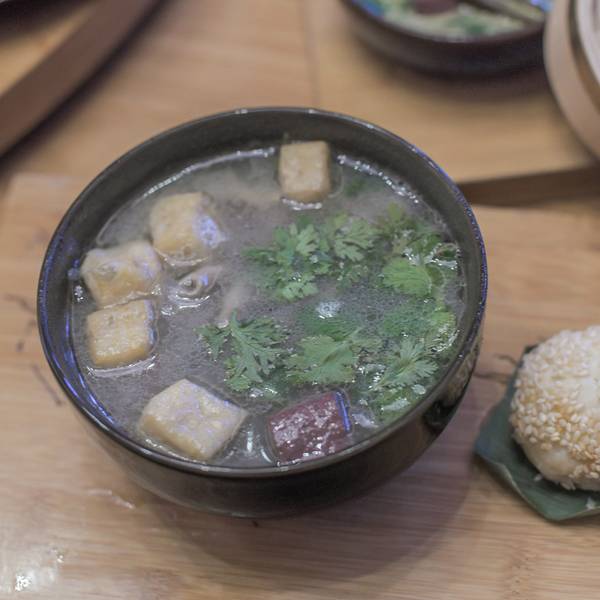 地点在老门东芥子园,不属于老门东的主干道,在景区岔路上,所以不熟悉的人半天找不到地方。 餐厅小,定位是中高档,菜品以秦淮小吃为主,用小碟子小碗呈上,显得精致。吃了那么多的自助餐,这里算品种很少的。每人再多给了一份羊棒骨,一份菌汤,一个甜品 伴手礼比较差,显得寒酸,而且不好吃太硬