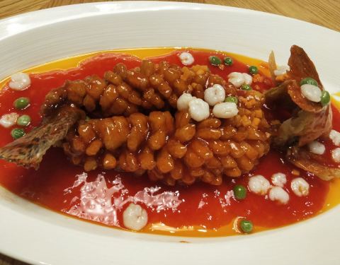 ...的松鼠鱼,造型不错,浇汁浓郁,鱼肉细嫩酸甜适口,我要吃 松子素烧鹅:烧鹅硬邦邦的不入味,不推荐