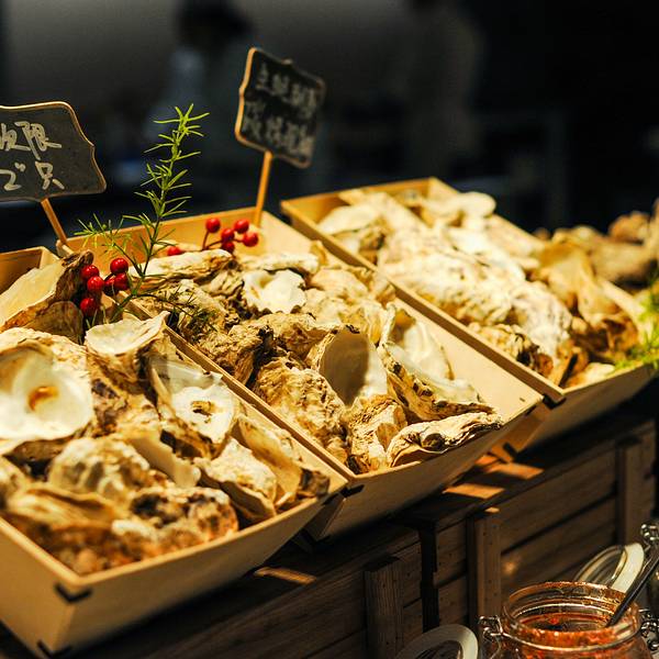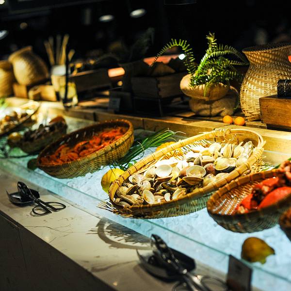水沙涟斜对面的便是全日餐厅Ho Jia 9。“Ho Jia”一词来自于台湾话中“好吃”意思,它以自助餐厅的形式,网罗全球美馔,引入台式美食新理念,精心打造多款招牌料理创新吃 法,以 9 个开放式互动档口,为金陵食客...水沙涟斜对面的便是全日餐厅Ho Jia 9。“Ho Jia”一词来自于台湾话中“好吃”意思,它以自助餐厅的形式,网罗全球美馔,引入台式美食新理念,精心打造多款招牌料理创新吃 法,以 9 个开放式互动档口,为金陵食客奉上全新的味蕾惊艳之旅。整个餐厅比较开阔,长方体空间,内侧为各种美食档口,然后依次是餐位,双人、多人皆有。整个装修比较大气,暗色风格,幽雅,加上一面是落地窗户,直面酒店外面的大草坪,视野风景也不错。最推荐和让人惊喜的就是不限量的加拿大进口的新鲜波士顿龙虾,体大肥美,现做现吃,新鲜美味,真的十分满足!烧烤区是我比较喜欢的,这里现烤的生蚝,个大肥美,有扇贝,汁美香润,烤肉、金枪鱼等,都是现烤现吃,火候刚好,口感都不错。另外在这里还可以吃到正宗的南京鸭血粉丝汤,面汤档口,可以现点现做一碗南京鸭血粉丝汤,自己在配上一些辣油,香甜微辣,胃口大开!酒店的早餐也是在这里享用,当然酒店也提供客房送早的服务。