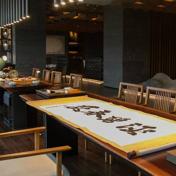 水沙涟中餐厅需要提前预约,在这可以品尝到许多台湾特色美食。餐厅等候区域设有书法体验和品茶区,如有兴致可以体验一下。▲餐厅面积很大,私密性极佳。