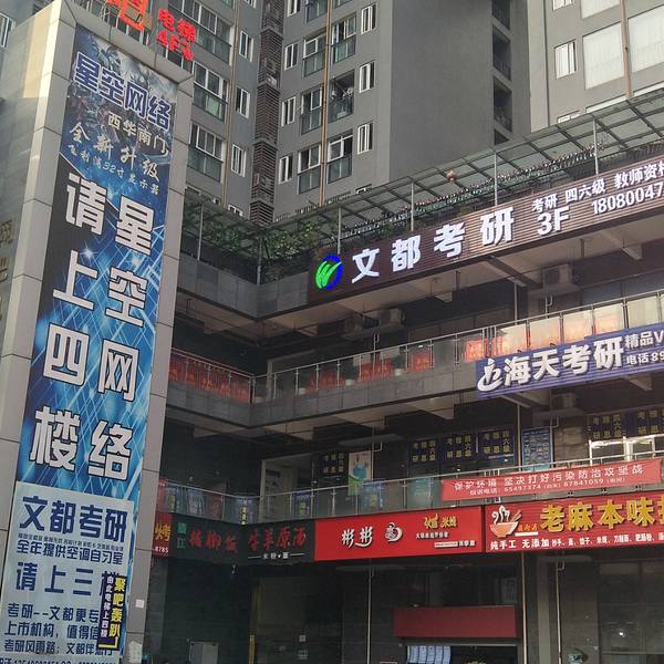 红光镇仅有的几个考研培训学校,几乎全部都进在西华大学南大门,可以说是考研学生的天下了