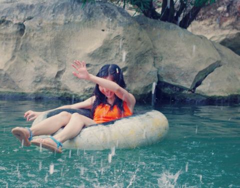 溶洞里面是暗河,需要坐轮胎顺河漂进去,准备好衣裤,出来绝对是全身湿完