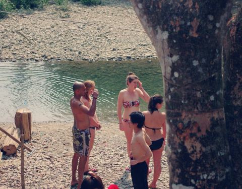 这个溶洞还是多有意思的,很多老外都来参加,估计这些运动类的项目,带点探险类的项目,老外比国人更感兴趣。溶洞里面是暗河,需要坐轮胎顺河漂进去,准备好衣裤,出来绝对是全身湿完。里面黑漆漆的,还需要电筒照亮,放心,会有当地的导游带队进去。