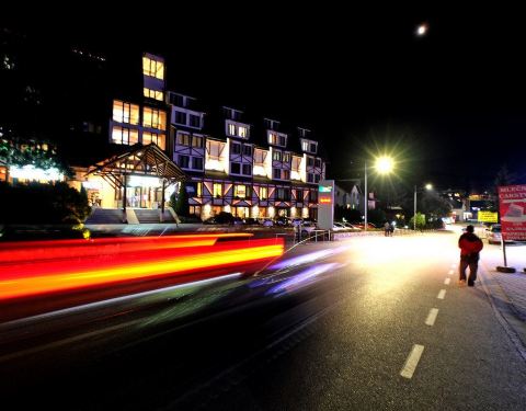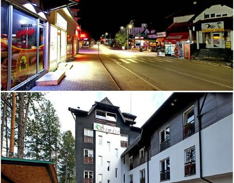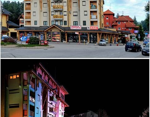 兹拉蒂博尔位于塞尔维亚的西南山区,是一个纯粹的旅游休闲小镇,布满了各类酒店,餐厅,民宿,咖啡厅和各种休闲娱乐设施,冬季这里主要以滑雪为主,夏季可以皮划艇,徒步,户外,是塞尔维亚人休闲的后花园,各地自驾前往旅游的人络绎不绝,这里毗邻黑山,大面积的森林覆盖住蔓延起伏的群山,远离城市的喧嚣,在这里可以回归最美的大自然,尽情呼吸原始森林的浓郁空气,晚上,小镇很有动画片里的浪漫感觉,色彩丰富,霓虹闪烁,路上行人很少,气温骤降,但是看着这温暖的小镇色彩,还是给人一丝暖意的感觉。随缘看世界