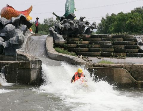 没图,没心情拍,就顾着抢装备了。非要去的建议转乘小车去哪里,因为必经之路上有汽车限高,两米五及以上的是绝对过不去的。到了地方买了票会有车送你上山的,到了漂流点就刺激了,所有东西都是靠抢的,因为在装备领用点没有救生衣和帽子,排了半个多小时才从山下运上一三轮车的装备,因为本身就无人维持秩序,大家可能也等的着急了,黄鱼车还没停稳游客就开始疯抢,总算抢到了救生衣,兴致冲冲的准备飘了,哈哈,工作人员说有船没有桨,而且必须有桨才能漂,等吧。又三十分钟过去,又有一辆三轮车来了,又一次集体抢掠,总算抢到了桨,准备开始漂,交了票,排着队。总算排到咱,船没了。。。。。这次又是等三轮车抢船,危险系数大大增加,因为皮划船本来就大又重,从露台推到下水口又有将近两米的二十五度左右的坡度,皮划艇直接从这个坡上滑下来的。主要是没有管理,里面基本没看到工作人员,从船运到后所有的后续的是游客自己动手,如果不抢,排在你后面的就先走了ヽ(‘⌒´メ)ノ。虽然知道很危险,可是还是硬着头皮跟着去抢了过来,在历经将近2个多小时的抢掠与等待中总于开始漂了,感觉非常不易与不值。