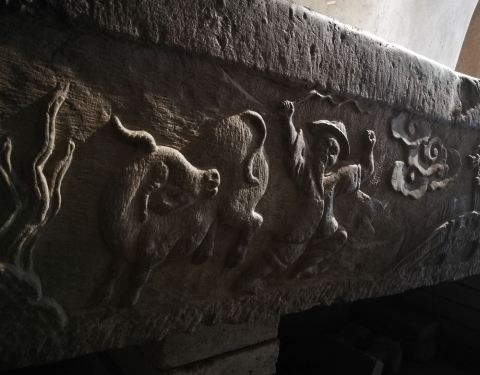 妖马洞位于曲江寒窑遗址公园内,是一处不太显眼的窑洞,洞顶有妖马洞三个大字,看到后比较感兴趣,就进去看看,一进洞,旁边有一个巨大的石槽,石槽外面雕刻有精美的画像,再往里走有点黑咕隆咚的,没看到有东西...