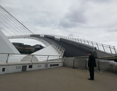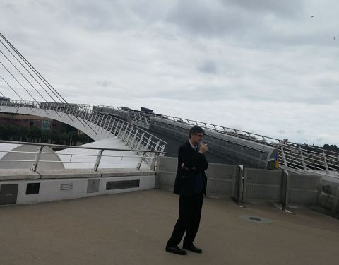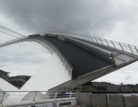 上次没看到,这次赶个早,来看千禧桥升起。虽然给了个一周每日千禧桥升起的时间表,但也可能调整,今天就提前了。整做桥吊起又放下大概15-20分钟,前后都有广播说明,水上也有负责安全的船只。在升起落下的过程中,没有船只通过。