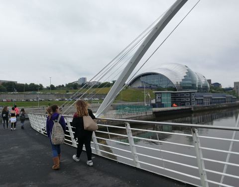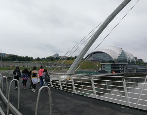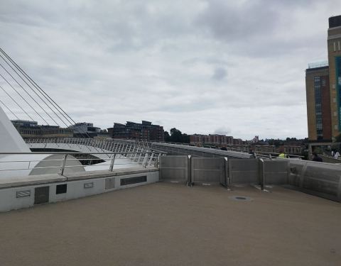 Tyne留着艺术的血液。在Tyne河上不远的距离内,有五六座桥,这座桥是最大的。离他不远的河边,有沙池,提供躺椅和铲子,喜欢!另一边不远,有baltic,是一座艺术展的楼;还有一座像瓢虫的建筑,是听音乐的地方。