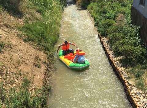 ...特色项目,坐橡皮艇漂流,水流也不是特别急,落差也不是特别大,可谓是老少皆宜,自然也少了一些刺激