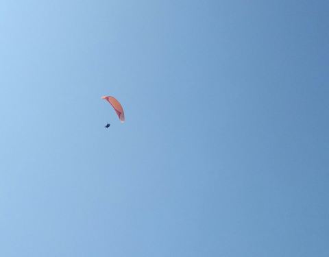 临海黄坦的安基山滑翔基地也是最近几年才开发出来的,为了适应乡村旅游的发展,把安基山头夷为一块很大的空地,供户外运动爱好者滑翔,体验刺激。不过滑翔一次收费也不便宜,要教练陪同的话,一次要600多,也不是一般人随便可以体验的。滑翔的活动范围不大,就在一片区域内,但不能长时间滑翔。