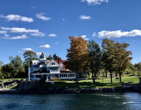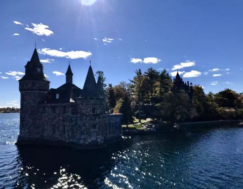 从多伦多出来乘坐游艇横跨安大略湖,就到了这里千岛群岛国家公园里面的wellesley。乘船绕Wellesley Island一圈没有登岛。岸上到处都是小别墅,岸边就是小游艇。经过著名的Boldt城堡。景色很美。