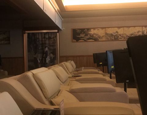 这是我泡的第三家极乐汤。比起碧云店和金沙江路店,嘉定店格局最小,而且沐浴用品和乳液等也非资生堂、豆乳,没有前两家好,不过我还是最喜欢嘉定店。首先因为这家店最新,其次是因为离我大宝山最近,最最重要的是休闲区的沙发椅是带电视的,至少另两家我以前去的时候躺椅是不带电视的,没电视,一天捧着个手机多累呀。
