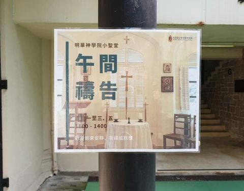 在中环,星期一到五有开放午间祈祷室,小小的一间房间,朴实的装扮,却有宁静祥和的亲切感。小教堂里还有一台风情,墙上的中国碑体现了他的历史。