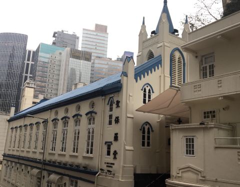 圣保罗堂位于中环的斜坡之上,走过去需要费一些体力。这是一栋蓝白色的哥特式建筑,奶油白色的墙身,浅蓝色的边饰和屋顶,很是小清新。圣保罗堂建于1911年,是圣公会的教堂,目前在内部有一家幼稚园,里面是不准摄影的。