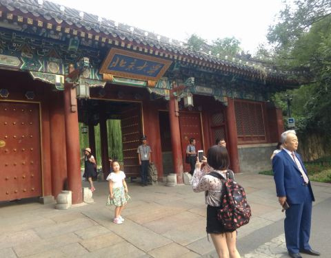一般游人进北大需要刷身份证才能进入。现在游人路过时,都喜欢拍照留念