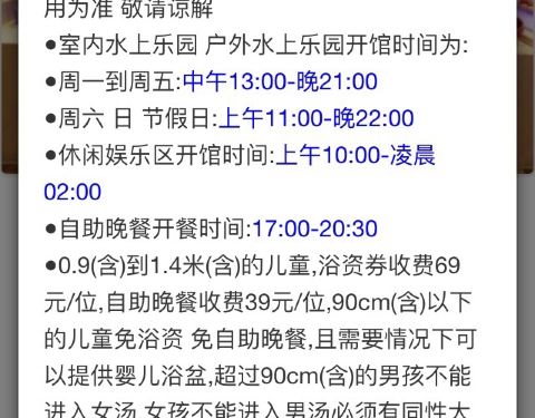 有些不足之处就是只有泡温泉的地方有水喝,活动休息区没有设置饮水处。环境还好,卫生不错。其他感受还好总体体验不错,不像有些评价得那么糟糕!环境还好,卫生不错。星期天下午去的,晚上自助餐很多人,吃的不错种类很多,也很新鲜!有些不足之处就是只有泡温泉的地方有水喝,活动休息区没有设置饮水处。这也是商家...总体体验不错,不像有些评价得那么糟糕!环境还好,卫生不错。星期天下午去的,晚上自助餐很多人,吃的不错种类很多,也很新鲜!有些不足之处就是只有泡温泉的地方有水喝,活动休息区没有设置饮水处。这也是商家为了促进娱乐区消费所动的脑筋啊……应该本着自愿消费的原则,自己带小宝宝,小孩小是不能喝饮料的,又要跑下去装水,这不太人性化!其他感受还好!下次还会带家人去玩的。 展开