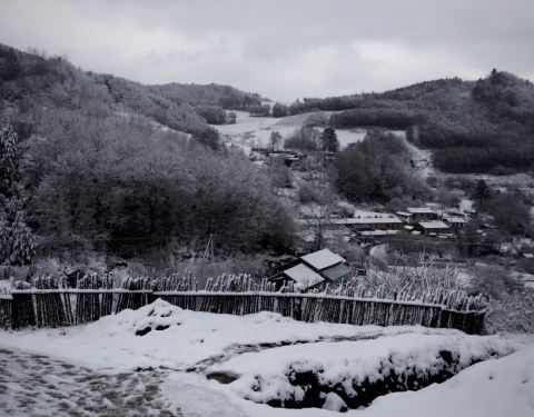 确实是典型的小村庄,房屋屋顶上满是积雪,户外是山和雪地,天地间仿佛一副美丽的画卷,很值得慢慢品味