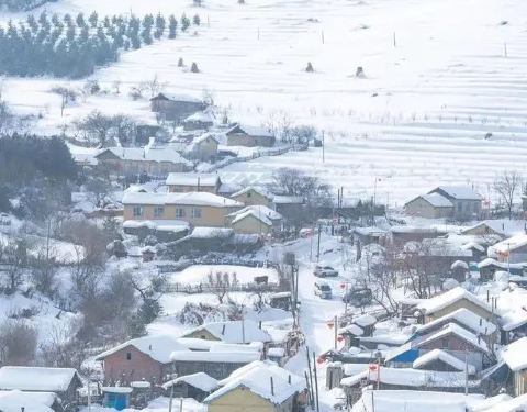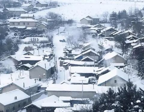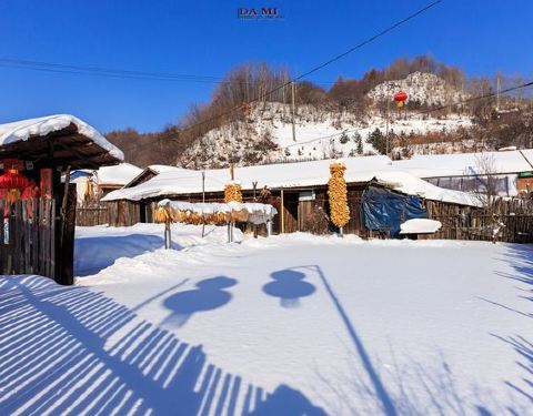 这里是雪的世界,位于吉林大山深处!确实是典型的小村庄,房屋屋顶上满是积雪,户外是山和雪地,天地间仿佛一副美丽的画卷,很值得慢慢品味!