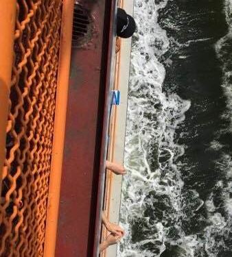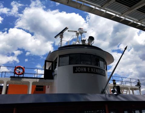 m15到底就是港口了,off peak 半小时一班,船超级大的,里面有洗手间,小卖部,上下两层,航行时间是25分钟,可以远观自由女神像和曼哈顿天际线,听说这个小岛上是没有地铁的,房价是纽约最便宜的,我们就乘了船,没有时间去看小岛了
