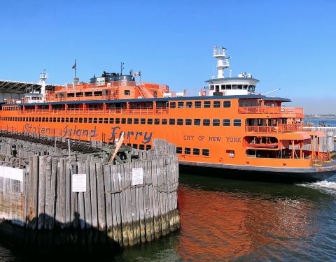 纽约市共有五个区域,一个是曼哈顿,一个是布鲁克林一个皇后区,一个是布朗克斯,最后一个区域是一个小岛,叫做斯坦登岛,这个岛有免费的渡轮可以坐船过去。 码头就在南码头,也就是说从下城区最底那里坐船过去,只是,并不是十分的清晰,进去之后只有一趟渡轮的,所以应该不会走错,高峰时期大约是半个小时一趟,途中会经过自由女神像,当然只是远观,如果对自由女神像没有什么兴趣的做这趟免费的渡轮就可以了,船航行时间是半小时,建议到岛上走一下。