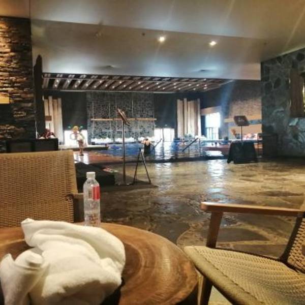 很好!第一天入住,可以领两张温泉门票,第二天十点以前退房,还可以领两张温泉门票,可以玩到下午六点。还有早餐,早餐很好吃!还有一个小动物园,太适合带孩子来玩了。 晚上十二点隔壁的人回来了,一群人不关门,孩子还一直吵吵。给前台打电话,立刻来解决了,听见前台小姐姐,过来跟大人说,大人没太理会,只是说了孩子两句,前台小姐姐又说了几句还给关上了门。给小姐姐点赞!!