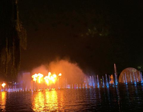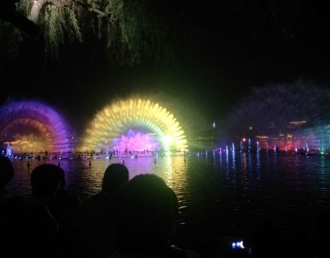 但是表演用的画舫造的很粗糙,白天立于湖面上,影响了湖景,因为大明湖湖面并不大,表演用的喷水口等...第一次来看泉城夜宴明湖秀,晚上19:30-20:00,票价目前执行优惠价80元、60元、40元,多种渠道可以购票。表演区域离大明湖北门、东门比较近,在明湖泛舟的太湖石那里,有三层看台的座位。个人感觉还行吧,不是惊艳...第一次来看泉城夜宴明湖秀,晚上19:30-20:00,票价目前执行优惠价80元、60元、40元,多种渠道可以购票。表演区域离大明湖北门、东门比较近,在明湖泛舟的太湖石那里,有三层看台的座位。个人感觉还行吧,不是惊艳的那种。我没怎么看过别的地方的灯光秀,所以不好比较评价。但是表演用的画舫造的很粗糙,白天立于湖面上,影响了湖景,因为大明湖湖面并不大,表演用的喷水口等设备也露出水面,很影响大明湖自然风光,希望能改善一下。表演时间正值晚饭前后,建议周边安排一些小吃之类的售卖更好一些。 展开