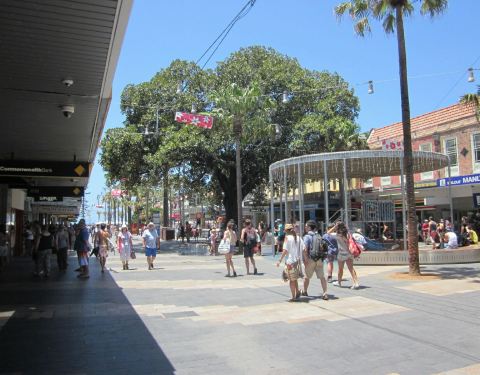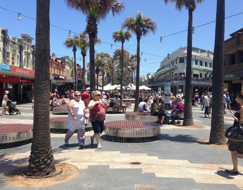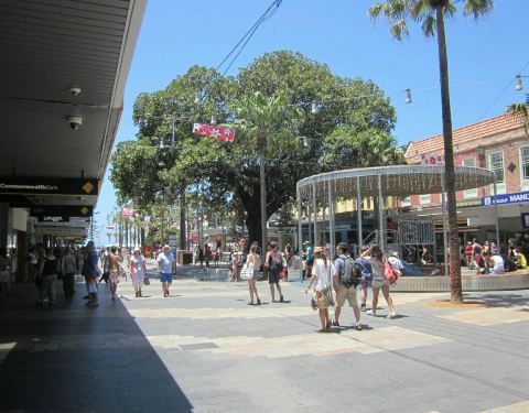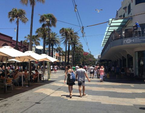 这里是悉尼著名的海滩-曼利海滩边的一条步行商业街