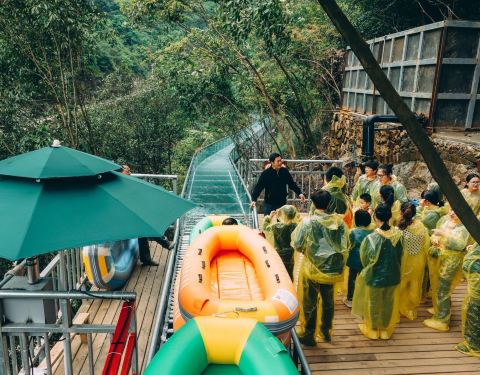 我们是上午到达山湾湾激流探险的,人还不是很多,激流探险是170块钱一个人,小朋友身高要超过1.4米才可以漂流!刚好儿子1.43米可以漂。整体漂流还是挺刺激的,不过小朋友胆子大,结束后喊着还要再玩一次。等漂流结束的时候,发现人流量变大了,所以建议大家上午去哦~