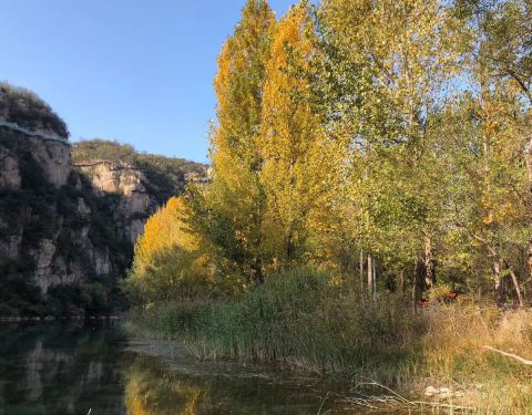 秋水非常的漂亮,淇河谷的天空、树木,倒影很美,趣味性强,空气清新,纯天然自然风景名胜区,性价比超高的淇河谷景区景色优美,秋水非常的漂亮,淇河谷的天空、树木,倒影很美,趣味性强,空气清新,纯天然自然风景名胜区,性价比超高的。