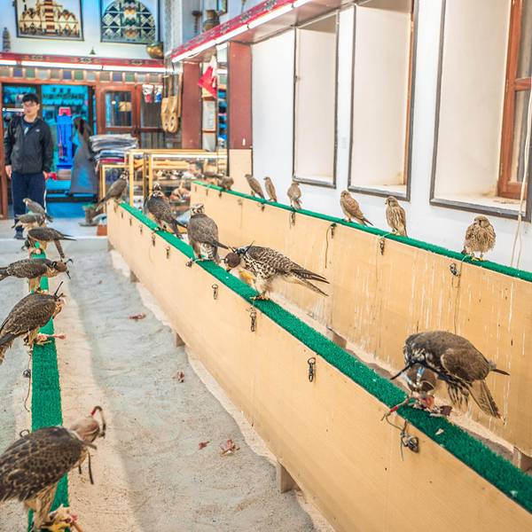 来到一个陌生的地方,我认为最能感受当地生活的就是当地的集市,那里聚集着当地人的方方面面,买卖吆喝声,讨价还价声,酒吧欢乐声,欢乐的气氛一直蔓延在瓦其夫集市。瓦其夫集市从傍晚时分开始热闹起来,这里有很多特色商店,充满浓厚的阿拉伯风情,土黄色的墙和柱子,搭建成简单的集市区域。这里的商店主要售卖各种当地的特色生活用品,阿拉伯风情具有明显的特点,颜色搭配夸张,以极其炫目多彩的颜色吸引你的眼球。让我停下脚步张望的就是这家地毯店,五颜六色的地毯让我看得眼花缭乱,我超喜欢这种颜色夺目的搭配,而卡塔尔人就特别喜欢用这种浮夸的色彩来彰显自己家里面很气派。当地人都会定期更换地毯。我试着拿起这些地毯,才发现质量特别厚实,问了一下价格大概是200~400一张地毯,真的太喜欢了,我都忍不住想买回家做纪念品。地毯,布艺,这里涵盖了卡塔尔生活用品的方方面面,不管是外地人还是当地人,它们都喜欢在这里逛。晚上夜色降临,一些卡塔尔妇女会结伴出来这里的广场购买东西,或者是带着自己的孩子在广场休憩,耳边总是传来欢乐的笑声。集市的主街道更热闹非凡,各式各样的酒吧和餐厅正对外迎接客人,他们当地人很喜欢抽水烟,所以酒吧常常有很多客人坐着一边喝酒一边抽水烟。多哈是一个越夜越欢乐的城市。过了晚上的12点,卡塔尔土豪们才会开着豪车出来兜风,去往不同的酒店酒吧,或者是瓦其夫集市的酒吧随意狂欢。虽然卡塔尔是一个中东国家,但是等你来到这里,你才会发现,它比你想象中要开放,比你想象中还能玩,我对这个国家充满了无限的好奇,真想长久呆在这里,了解他们神秘面纱的背后生活。瓦其夫集市还有很多卖纪念品的地方,它们很喜欢一些又亮又闪的装饰,特别是在夜里会发光的像阿拉丁神灯的灯饰,实在太漂亮了,犹如走进了一千零一夜中。神灯太大带不回家,地毯又太重提不动,在瓦其夫集市我唯一能买的就是这些最能代表卡塔尔的纪念冰箱贴了。来到瓦其夫集市,别忘了到当地的鹰隼宠物店看看。人人都爱宠物,卡塔尔人也不例外,但是卡塔尔人喜欢的并不是猫猫狗狗,他们的宠物可高大上了,是鹰隼。走进鹰隼店内,可以看到大大小小的鹰隼,它们都像商品一样,等待着挑选它们的主人。有些鹰隼正在吃着生鸡腿,它们用尖尖的嘴在戳食物。询问价格,鹰隼的价格还不便宜,一只需要大约2w人民币,真的是土豪们养的宠物,宠物也要跟正常人不同,价格还那么遥不可及。我很好奇为什么这些鹰隼头上都带着个小东西,原来这是它们的眼罩,鹰隼的主人为了培养它们的敏感度,都会把眼睛遮起来,通过嗅觉听觉来让他们变得灵感,只要你稍微靠近它们一点点,它们就能闻到你身上的气味,我稍微卡擦一下按动快门键,它们也能听到反应到,脑袋左动右动,虽然它们的眼睛被蒙住了,但是我还是很怕它们尖尖的嘴会戳人。鹰隼宠物店隔壁还有一个鹰隼美容院,我真的太惊讶了,这个美容院跟我们平常的猫狗宠物医院差不多,鹰隼的主人会定期带它们的宠物做检查护理美容。卡塔尔人对待鹰隼待遇这么高。