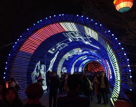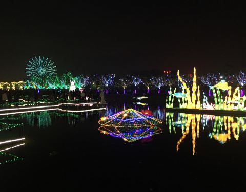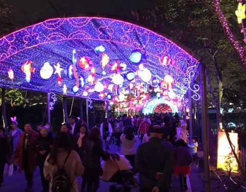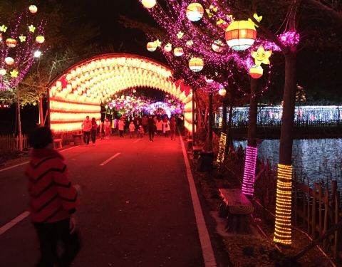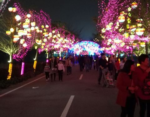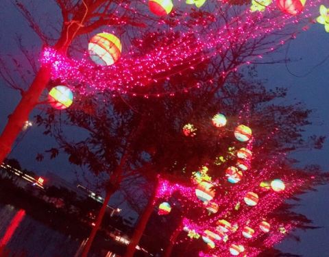 灯很美,人也很多。一家人出去散散步还是不错的灯很美,人也很多。一家人出去散散步还是不错的。昨晚元宵夜8点才去到绿梦,兑票排了好长好长的队,打仗似的~逛了两个小时不到就逛完了。