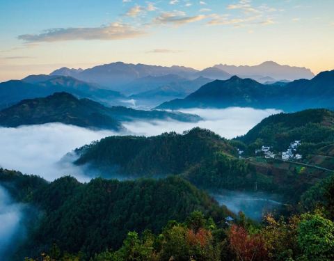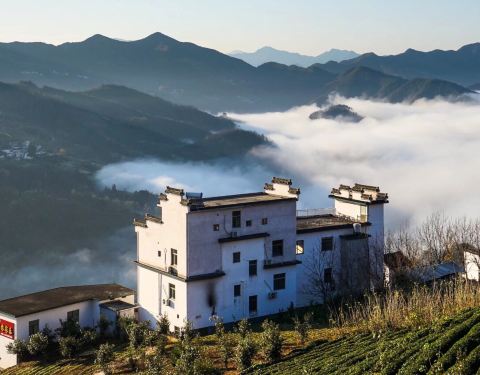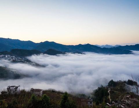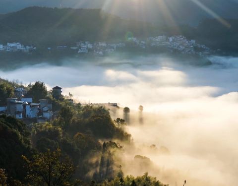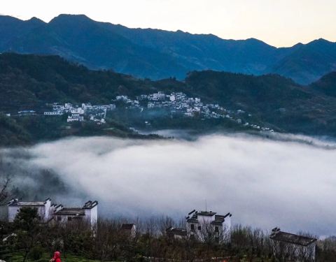 ...,一览无遗,壮阔的云海在奔腾着,加上徽派房屋的点缀,简直就是天上人间,不愧是全国有名的摄影基地