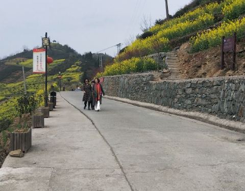 有幸在明媚的三月,走进坡山,而且住了一宿。是清脆的鸟鸣唤醒了酣梦,坡山地势极其开阔,大片的油菜花泼泼洒洒极为壮观,幽静中有大气磅礴,登上小山观景台,在两边是葱绿油茶树的小径上缓步,看桃花红梨花白菜花黄,真的美极了!很多农家乐,吃住都很方便。适合住下慢慢游,我们正好碰上九点开幕的民俗节,还有热闹的节目助兴,着实不错。