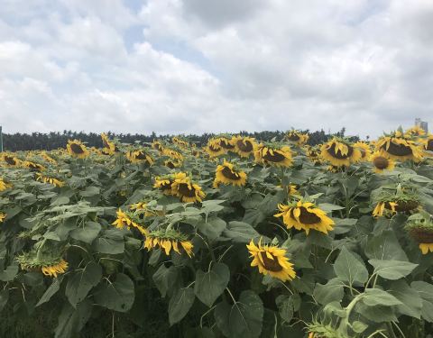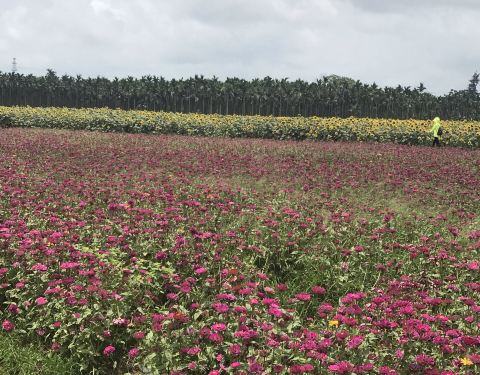 现在的花海只有两种花,拍照还是蛮美的。我本来以为可以在向日葵花海中拍照,不过向日葵已经枯萎了。新的向日葵花海得等多两个星期吧。