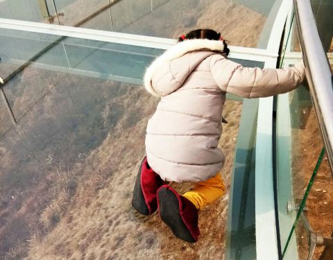 玻璃栈道还是有些人害怕哦!不要门票费!但对我来说不算太高!眺望远方不错!自驾车去的,路挺好的