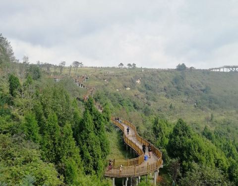 这里值得去,绝对值得去,视野开阔,风景又好,地方又大,真的是要翻几座山,空气好,走路,自驾的好去处,人太多了,都没地方停车!玻璃栈道惊险刺激,不错,值得推荐!