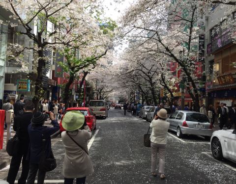 ...其实就是一条两边种满樱花树的,马路,嗯,完全就是可以边逛马路边看一下风景,而且这条路上都是商圈