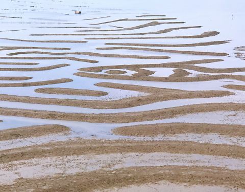 南湾甲骨文,在霞浦盐田的南湾,也就是海上甲骨文或者称海上迷宫。这个景点还有七彩围网。离鹅湾红树林不远。去时一定要注意潮汐时间。