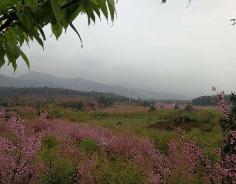 ...速过去一个半小时到常宁罗桥镇,群山环抱中一片樱花园,不同花期的樱花连绵不断,红绿相间,春意盎然