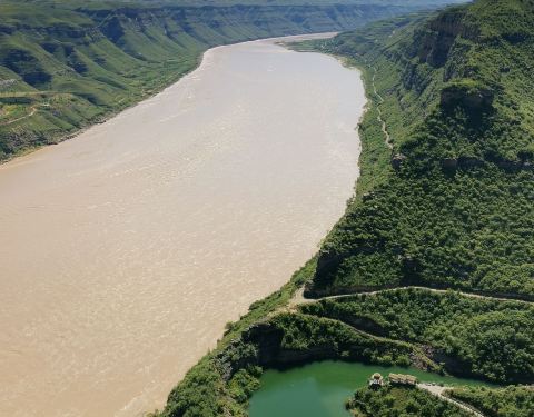 这里山势险峻,始建于明代,是古代的防御工事,东临黄河,四面悬崖突兀,从山顶俯视深沟处,碧水深潭...
