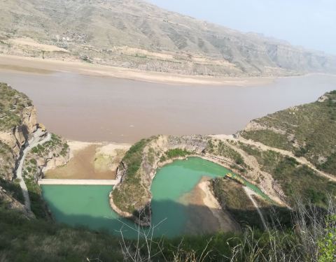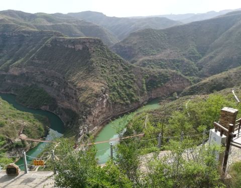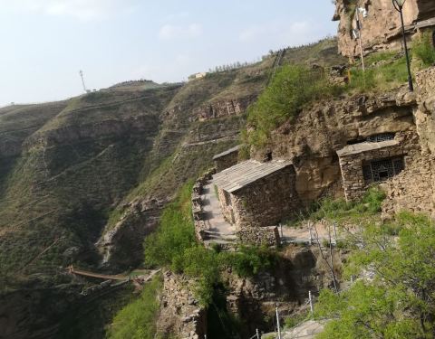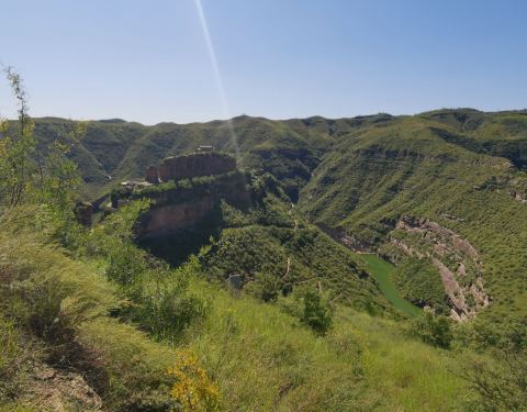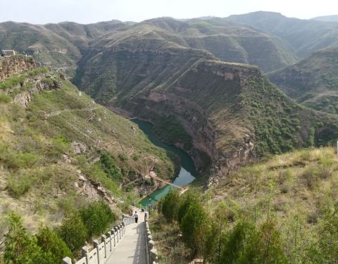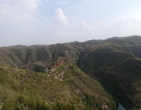 打caII之地。这里山势险峻,始建于明代,是古代的防御工事,东临黄河,四面悬崖突兀,从山顶俯视深沟处,碧水深潭、山环水抱,有如龙盘虎踞,别是一番景致! 包车的一行人,只有我俩匆匆登临寨顶,导游几次电话催促,我俩无暇逗留,只好大汗淋漓地赶下山去,前后只用了40分钟,累得要吐血了,值得! 同行的小妹妹相中了我拍的一张沟壑纵横的原图,弥补下她未去的小心塞!