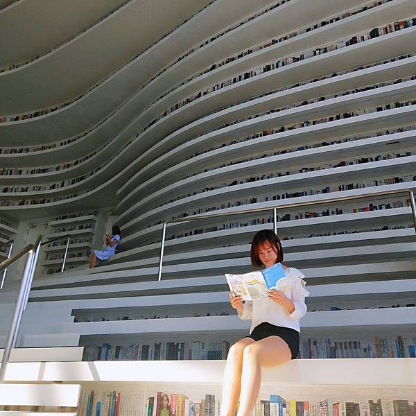 海浪起伏般的书山、高挑的空间、一面巨大的落地窗洒满阳光,已是天津不得不打卡的网红拍照地