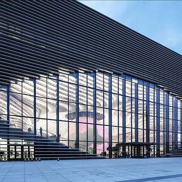 项目包含“三馆两中心一长廊”,即滨海图书馆、滨海美术馆、滨海科技馆、滨海演艺中心、滨海市民活动中心、文化长廊。文化长廊是整个文化中心的点睛之笔,伞形钢结构高大典雅,串联五座文化场馆,成为项目主轴线。