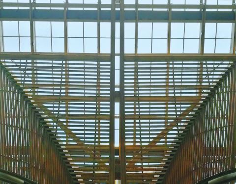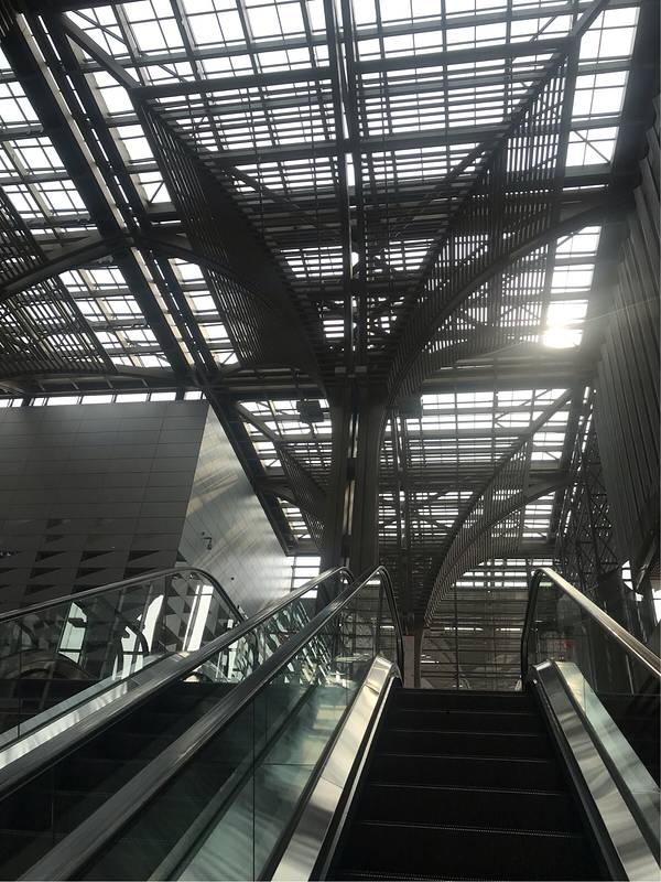 文化长廊是整个文化中心的点睛之笔,伞形钢结构高大典雅,串联五座文化场馆,成为项目主轴线