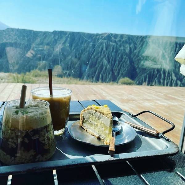 探店崖边咖啡屋,咖啡店四周全是落地窗,正对大峡谷,点一杯热可可,坐在窗边欣赏外面壮阔的景色,视野和味觉通通得到了享受。