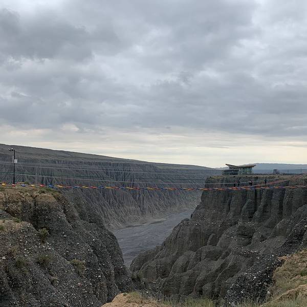 在著名的独库公路起点的分支上,从独山子下高速后只有35公里的车程,45分钟即到。作为游览独库公路的首站很合适。 门票:30元;老人60-69岁半价,15元;70岁以上免费(自费探险项目另算) 游玩时间:2小时 景区内停车场车位充足, 洗手间也挺干净的。进门后要下坡才能到大峡谷边的观景台,此时可以选择步行楼梯或者坐滑道下去(自费)。 大峡谷的边上有很好的围栏保护,趴在围栏上眺望峡谷,峡谷的气势首先让人为之一振。和南方郁郁葱葱的、高低错落的峡谷不同,独山子大峡谷展现给人的是一种磅礴的气势,峡谷的顶部平平的台原,像是被刀切过一样,峡谷对面的小车从顶上驶过,看上去就跟小孩儿玩的玩具车一般大小,让人惊叹大自然的无穷力量,人只是沧海之一粟。峡谷底部还有一条直路,但是貌似还没开通,只是偶尔有工程车驶过,声音震天。 景区内还有许多自费的项目:玻璃桥、高空单车、跳板等等,这些都是没有包含在门票之内的,感兴趣的朋友可以试试。