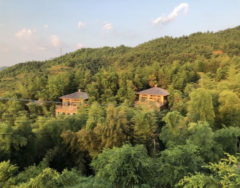 住在山顶上,小镇空气不错……周边是茶园、竹林环抱着,有小木屋可以入住,从广州自驾游开车过来将近四个小时,游客还不算太多。