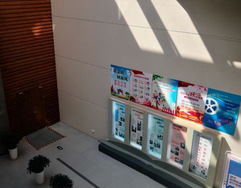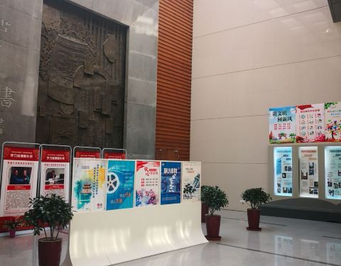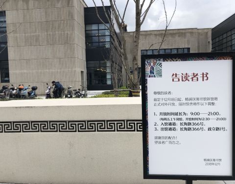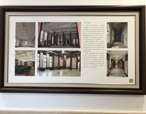特地过来看长海路上的杨浦区图书馆新馆。整治得非常漂亮。新与旧在此得到完美融合。用上图图书证刷卡进去看看。主要是在一楼的平面内活动。多处墙上装点了整个建筑是如何维修的工程照片,足可抚今追昔。 自己现场也全自助借了本书。体验良好。 顺便也看看当年老装饰。门口有二维码,扫了关注后可获得各种资讯。