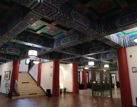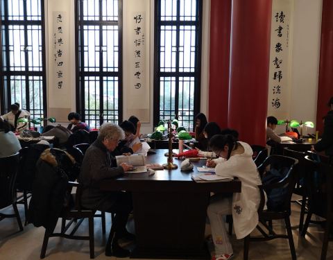 楊浦區舊建築修復改建的圖書館,建築風格為中式古典建築,室內裝修充滿宮廷和璽彩繪,有上海小故宮的稱譽。