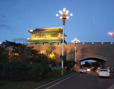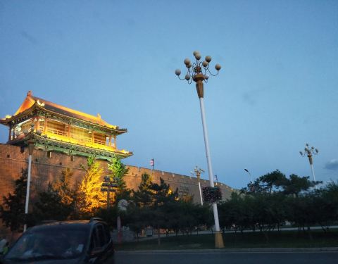 是新建的宣化西门,气势恢宏,连接着城墙,是去张家口必经之路。元宵节前后大新门有灯展,大新门在四月份,有黄色迎春花,粉色榆叶梅盛开,衬托着大新门分外古朴典雅。登大新门免费,下午四点关闭。